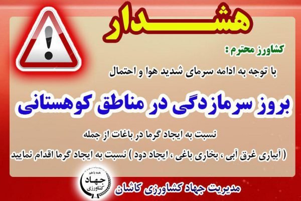 کانال رسمی هواشناسی کاشان و شمال استان اصفهان امروز «تمدید هشدار سرمازدگی و بارش» را اعلام کرده است.