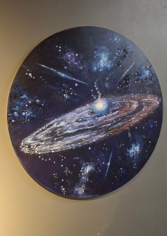 -پینوشت این یاداشت میتوان به این نکته اشاره داشت اگر هر اثر وجهی از شخصیت هنرمند انگاشته شود، هنرمندی که همواره در تعامل با آبی فیروزهای کاشیها، طاقهای مقرنس وگنبدهایی که نشانه آسمان را تداعی میکنند، باشد و چنان در راههای آسمان قدم بزند که کهکشان را به کارگاهش فرا بخواند بیشک دارای اندیشه و تفکری نزدیک به تعریف مرحوم سهراب سپهری دارد و با تمام افقهای باز همراه است.