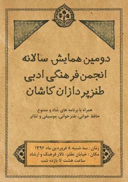 طنز در جامعه ایرانی و به خصوص شاعرانی که نسبت به جامعه خود احساس تعهد میکنند رونقی دیرینه داشته است در کاشان نیز شاعرانی که دستی بر طنز دارند دومین همایش نوروزی انجمن فرهنگی ادبی طنزپردازان کاشان طبق معمول هر هفته سهشنبه تشکیل شد اما این بار با تفاوتهایی در شیوه اجرا و البته تغییر در ساعت داشت و تالار فرهنگ و ارشاد ابتدای خیابان نطنز رأس ساعت ۸، شامگاه سهشنبه ۸ فروردین برگزار شد.