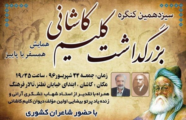 سیزدهمین کنگرهی بزرگداشت کلیم کاشانی و همایش همسفر با پاییز، شامگاه جمعه ۲۴ شهریور در تالار فرهنگ کاشان برگزار شد.
