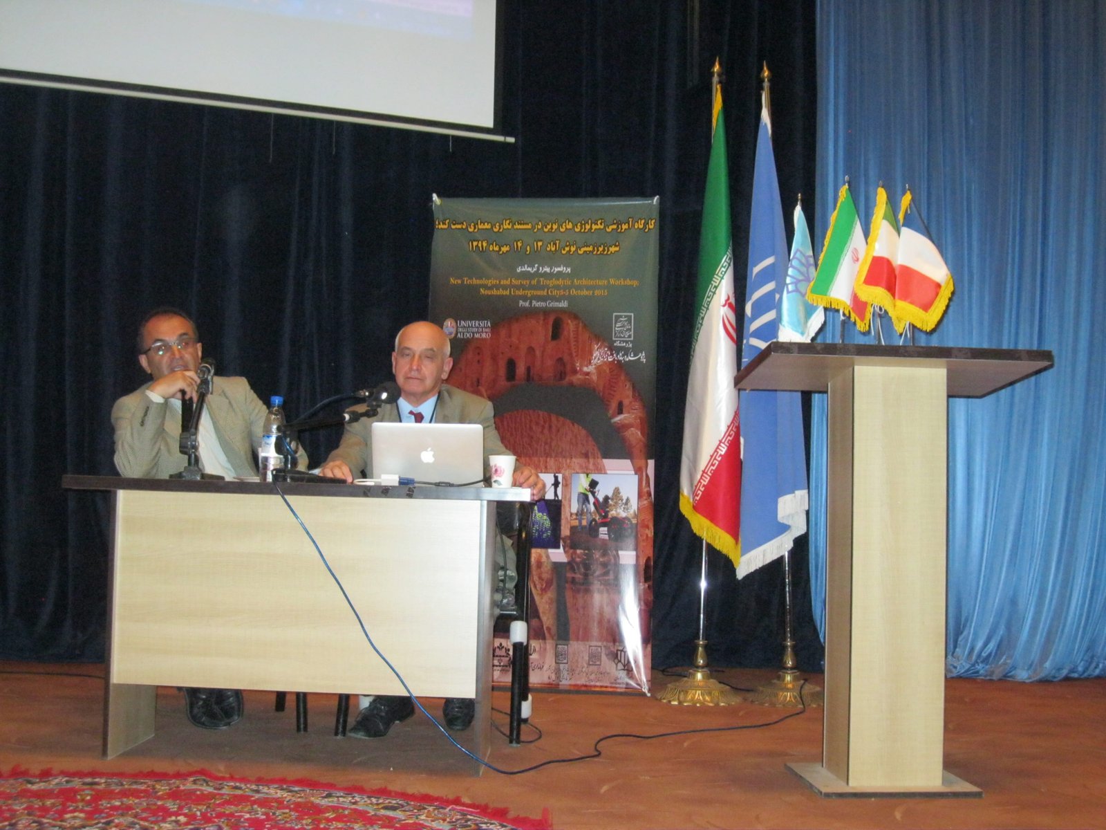 در آیین افتتاحیه این کارگاه که صبح روز دوشنبه ۱۳ مهرماه در سالن اجتماعات شهید راحمی در نوش آباد و با حضور شهرداران و اعضای شورای اسلامی شهرهای کاشان،آران و بیدگل، نوش آباد و سفید شهر و مسئولین و کارشناسان میراث فرهنگی استان و شهرهاستانهای کاشان و آران و بیدگل برگزار شد، پورفسور پیترو گریمالدی استاد مدعو این کارگاه از کشور ایتالیا توضیحاتی را در خصوص آخرین تکنولوژیهای مستند نگاری فضاهای دستکند زیر زمین برای حاضرین بیان کرد.