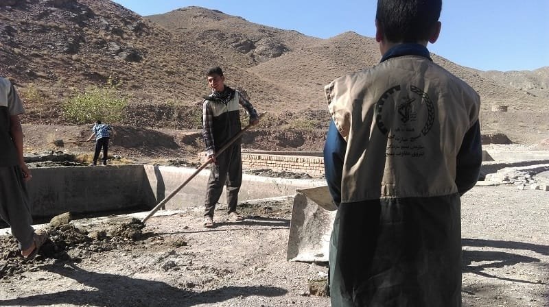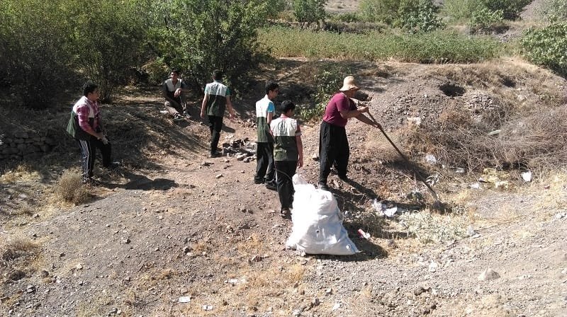 لایروبی استخر و جمع آوری زباله به همت بسیج سازندگی