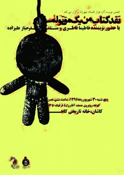 انجمن نویسندگان هزار افسانه شهرزاد، در ادامه برنامههای نقد کتاب ماهانه خود، نشست نقد و بررسی مجموعه داستانی «من یک مقتولم» نوشته «فاطیما فاطری» را با حضور «فرحناز علیزاده» نویسنده و منتقد ادبیات داستانی برگزار میکند.