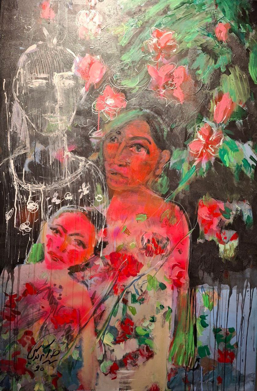 شهرام کریمی هنرمند و نقاش شناخته شده، اهل شیراز است که اکنون ساکن آلمان میباشد. آثار نقاشی کریمی در گالری مریم کاشان مبین تلاش وی در جهت گسترش حیطه معنایی و موضوعی است. تابلوهای نقاشی وی در بردارندهی مضامین متعدد میباشد شاید نقاش با انتخاب و کنار همچینی تابلوهایش سعی داشته تا جلب کننده نظر هر مخاطبی باشد. آثاری که نقش روایت در آنها برجسته و پررنگتر است در کنار پرتره و طبیعت بیجان، خود مبین انتخابی از سر تامل میباشد. در یکی از تابلوها مخاطب با زندگی یک نسل مواجه است. مادر و فرزندی کنار هم با لحاظ نقش جدی که میتوان حضور او را پررنگتر از افراد نشسته در پلان اول دانست. چهرههایی که بیانگر سیر تاریخی غم و رنجاند. مات و مبهوت از اتفاقی که شاید خودشان به آن رضایت ندارند.