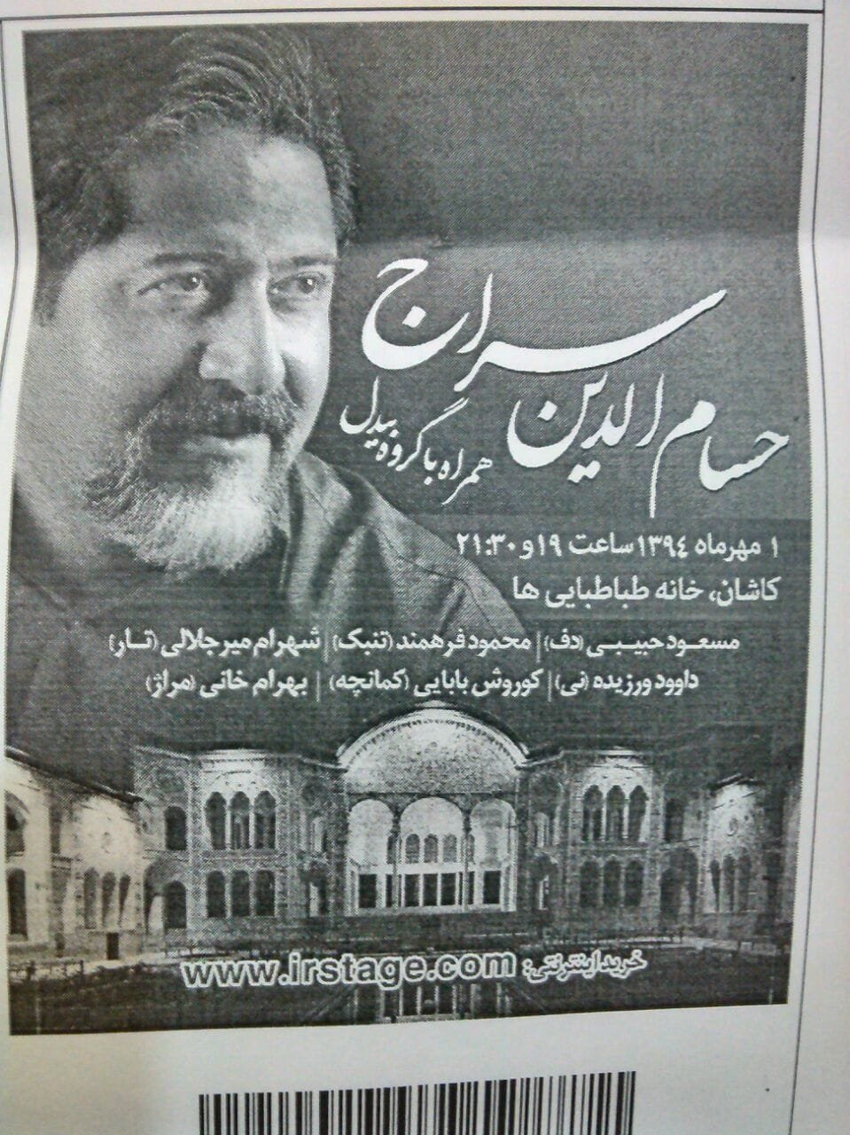 همزمان با آن گروهی به خوانندگی حسامالدین سراج و به دعوت سازمان فرهنگی ورزشی شهرداری از اصفهان برای اجرا در خانه طباطباییها در روز چهارشنبه مجوز شهرداری را گرفتهاند.