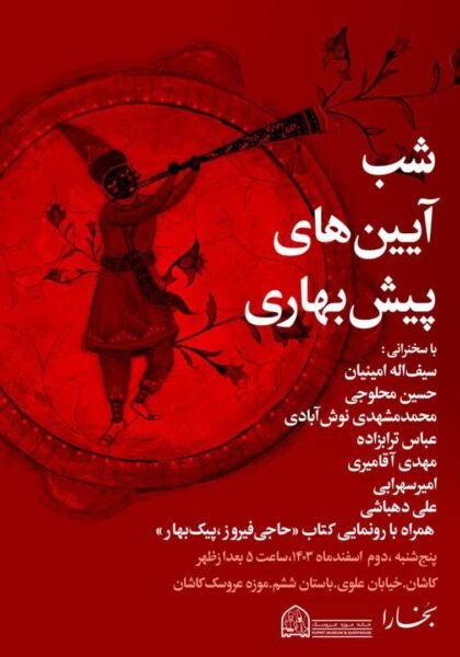 کاشان نیوز: هشتصد وبیستویکمین شب بخارا به موضوع آیینهای پیش بهاری اختصاص دارد و باهمکاری موزه عروسک کاشان برگزار میشود.